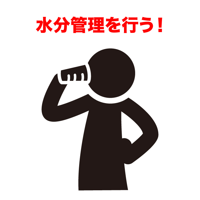 運動前から水分補給を行うことで、体内に水分を溜め込んでおきましょう。